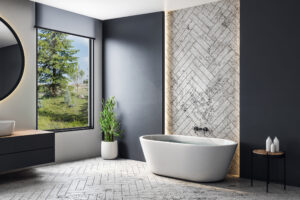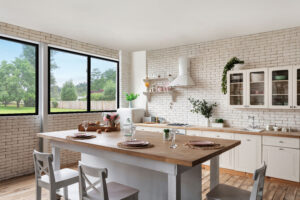 Anlin Panoramic picture windows and single slider window with maximum glass viewing area.